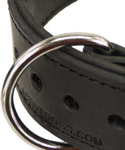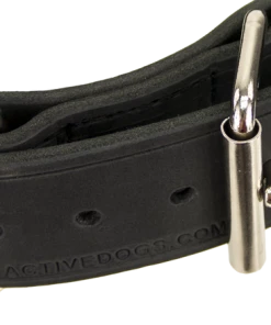 Available with a single layer or for even more strength, 2 layers stitched together. The buckle and D-ring are together so nothing pokes into the dog’s neck, and the extra-wide 2″ leather provides even more comfort. Quality, nickel-plated welded hardware is used on this collar. Made by Activedogs.com in the USA