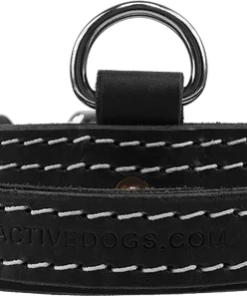 The placement of the D-ring allows the collar and the handle to be in proper position when doing agitation work.  This collar has a lay flat handle so the handle stays out of the way when not used.  The buckles and hardware are nickel plated. Made in USA