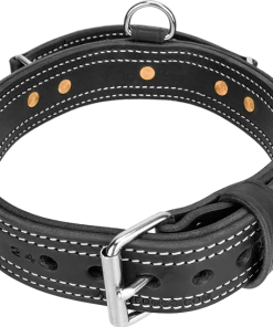 Our 2″ Heavy Leather Collar with Handle is made with 2 layers of durable latigo leather that are stitched and riveted together. Latigo leather is a durable, flexible, softer leather and it breaks in faster. It is dyed solid all the way through, so it will not fade. Because of the conditioners that are infused with oils during the process latigo leather is almost waterproof. It will not dry out like most harness leather. It can be easily cleaned and oiled after use.