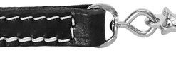 Our 2″ Heavy Leather Collar with Handle is made with 2 layers of durable latigo leather that are stitched and riveted together. Latigo leather is a durable, flexible, softer leather and it breaks in faster. It is dyed solid all the way through, so it will not fade. Because of the conditioners that are infused with oils during the process latigo leather is almost waterproof. It will not dry out like most harness leather. It can be easily cleaned and oiled after use.