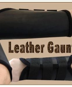 This is a significant Leather Gauntlet. It is made from thick, 11oz. latigo leather. Latigo leather is a durable, flexible leather. It is dyed solid all the way through, so it will not fade. Because of the conditioners that are infused with oils during the process latigo leather is almost waterproof. It will not dry out like most harness leather. It can be easily cleaned and oiled after use.