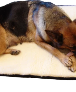 The Magic Carpet Dog Beds are double sided with our high quality shearling fabric on the front, and black heavy fleece on the back. The Fleece/Sherpa beds are very thick with dense fibers for maximum comfort. The shearling is also hospital grade material which makes it antibacterial and much safer than stuffed beds. These beds are great for summer or winter, they will insulate your dog from the heat of the summer and protect from the cold of the winter.
