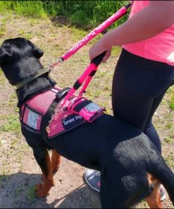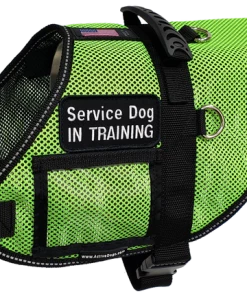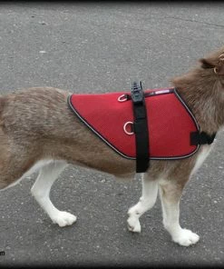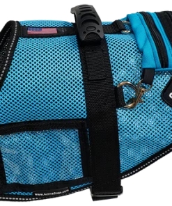 The Mesh Vest with Handle is done in the same style as our S&R Style Harness Vest and will fit your dog in the same way. This is a great vest as it has all the same features with the comfort of air breathing mesh fabric. A great vest for summer and for dogs that need to work in the heat. The Mesh Vest w/Handle features additional side D-rings for using the bridge handle (sold separately). The shorter attached handle is made from easy grip molded rubber materials. There is a clear vinyl pocket for your ID or other important papers on the side of the vest. The entire Mesh Vest w/Handle is bound in reflective webbing for night safety. On top of the vest, there is a heavy welded D-ring for attaching your leash. The chest strap has a two-way adjustment. The girth strap is adjustable and allows your dog the mobility that it needs to work, run, and jump. Comes in 9 colors, red, blue, black, coyote brown, yellow, pink, aqua, lime, orange. This vest comes in four sizes. MADE IN THE USA