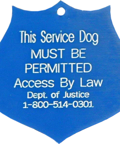 The back of the tag says “This Service Dog MUST BE PERMITTED Access By Law, Dept. of Justice” and their phone number.
