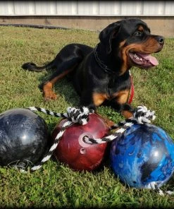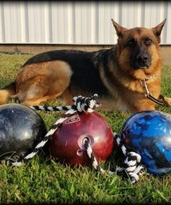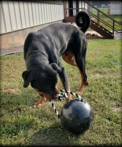 The Dog Muscle Building Ball is a great neck and jaw builder for your dog! This ball rolls around making it exciting for your dog to paw at, chase, and carry around! The carrying handle is made with a thick nylon rope double knotted for easy grab & durability. The Muscle Building & Exercise Dog Ball creates hours of fun play for your dog while exercising, burning energy and building muscle. These balls are indestructible and a perfect toy for your power dog!Â