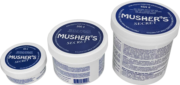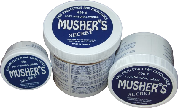 I would not take my dog out for a bike ride without using this product. A couple of years ago on a hot summer day my dog and I bicycled to a friendâs house that was about six miles from my house. I stopped a couple of times in the shade to rest the dog. The next day he was limping on his front leg, I thought âoh no a leg injury.â When I lifted his front paws to check him, I saw that there were two toes that had the pads worn through. I felt so bad that I had run him on hot blacktop without knowing this could happen. That is when I sought out paw protection and Musherâs Secret was the winner. This is the best stuff for hot or cold protection on your dogâs paws. Before we bike I just open the top of the jar and slide his paws across the wax. This works very well and we have never had any paw problems since we started using Musherâs Secret. Even on a hot day where we have to do a lot of blacktop walking I will use this paw protection. Dog musherâs who sled & cart their dogs have used this stuff for years. There are other wax protection products that have been recently introduced into the market. Read the label and check the ingredients for the dogâs safety. Musherâs secret is the only all natural human grade product on the market. For example if a dog would accidentally ingest the Musherâs secret the dog will not be harmed. Whereas a product with lanolin would be harmful if swallowed.