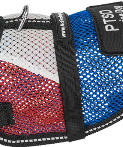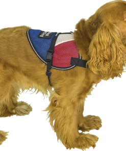 We designed this vest to honor our American disabled service veterans. It has been designed in a red, white, & blue color scheme like our American flag colors. The Patriotic Tiny Dog Mesh Vest is made with two layers of mesh for strength and durability and is designed with heat, humidity and water in mind. The vest is bound in reflective webbing for an added safety feature. There is a D-ring on the vest for attaching a leash.