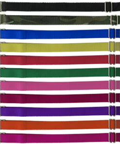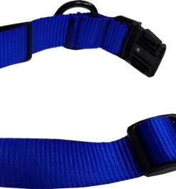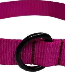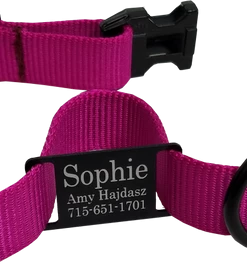 The Personalized ID Nylon Collar has an engraved metal dog tag woven into the webbing so that you do not have any tags dangling down or getting in the way. All of our Nylon collars are made with a heavy duty thick nylon webbing, and are double stitched to ensure top quality.Finished off with black metal buckle & D-ring make this collar extra durable and look great at the same time. This collar comes in 11 color options & 2 sizes. Made in the USA