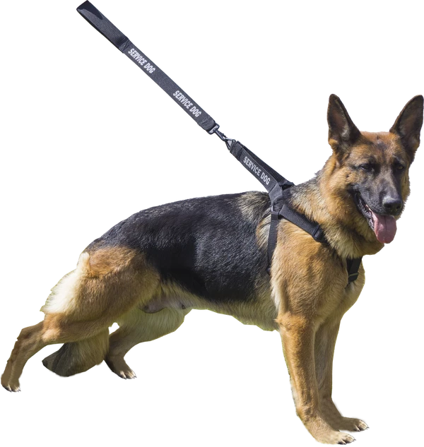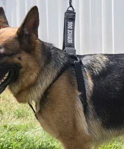 The Step-In Service Dog Harness & Leash is made with black webbing and your choice of red or reflective silver text. All the hardware on these harness & leash sets are black. The leash has a cushioned comfortable handle and a black bolt spring snap. All the straps of this Step-In Harness are adjustable and the harness will fit dog’s girth measurements from 24” to 38”. Choose from several text messages or have your own custom words put on this harness & leash set.