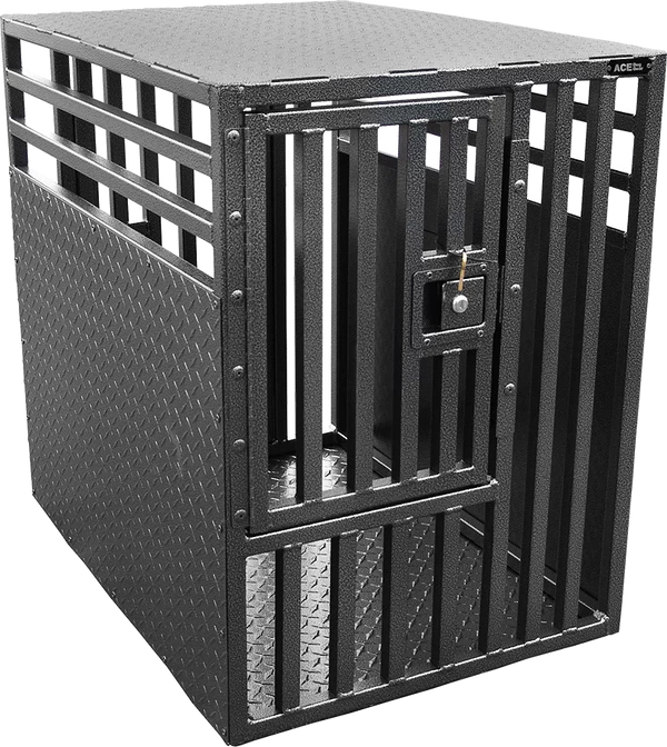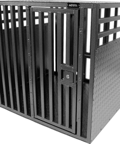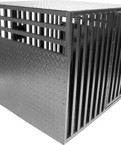 Made from lightweight but strong aluminum that is TIG welded for a quality finish. Full tread floor gives dog grip while vehicle is moving. Flexible usage configurations with one lockable door on each end. The beautiful powder-coated finish is extremely durable. It is a two step process which produces a very hard and durable surface. Powder coated inside and outside the crate. Designed and made in the USA by Activedogs.com. Choose from two available sizes.