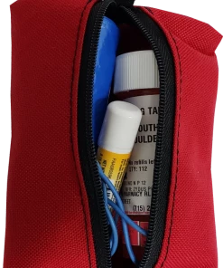 The Clip-On Service Dog ID Pouch is a helpful service dog tool for Identification with the bonus feature of a little storage. The pouch front has a vinyl pocket for your dog’s ID or ADA card. Above the window pocket there are bright white embroidered letters that displays the words “Service Dog”. The back of the pouch has a full length center zipper so it is so easy to open and access the pouch contents. The pouch will hold a pack of the ADA cards (sold separately), keys, a small pill bottle, headphones, poo bags, etc.