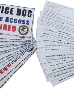 Each card contains access information and federal contact information. They are color printed on both sides using heavy card stock paper. They are not laminated. These cards are perfect for helping others understand your rights as a disabled handler of a service dog, therapy dog or emotional support dog. Cards come in a zip-lock, reusable bag.