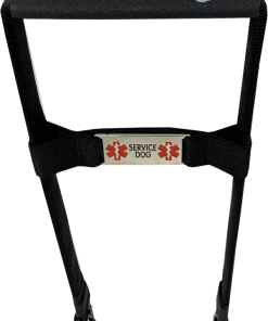 The Rigid Bridge Handle is a solid steel core bridge handle with metal HK style snaps, rubber grip handle, and a chrome service dog identification band. This bridge handle has a solid steel construction so it will stay rigid when using. The chrome service dog identification band is well done. It is engraved with the text Service Dog and two insignia’s. The band can be adjusted to the desired height you want it placed on the handle. It is also removable. The top of the Rigid Bridge Handle has a flat rubber grip. The snaps are high quality HK style metal snaps. This bridge handle is 12″ tall.