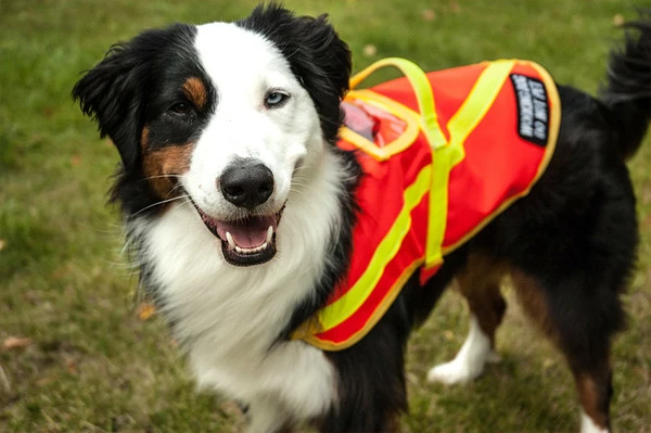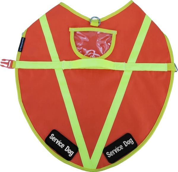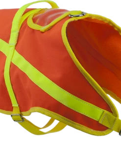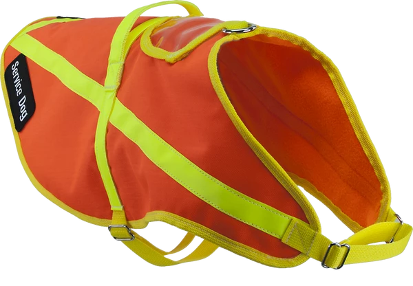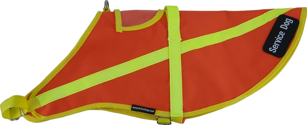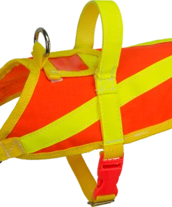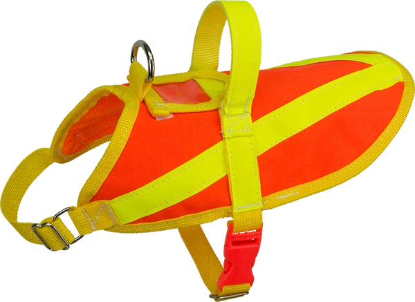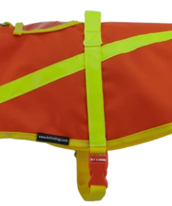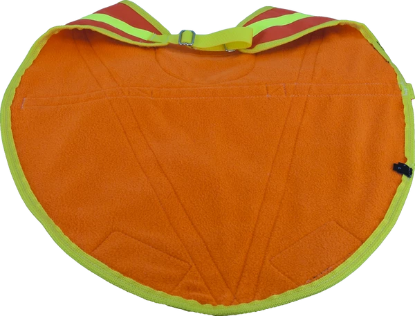 A bright safety vest and coat all in one. Our Reflective Safety Harness Vest is more than a mere safety cape. During day or night hours the harness is a highly visible vest. Using the best materials the exterior is made from sturdy 1000 denier blaze orange fabric. This is a very bright material with a durable finish. The interior lining is soft orange fleece for added comfort to the dog.