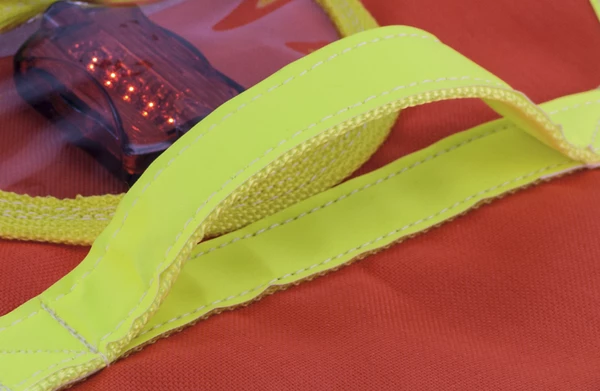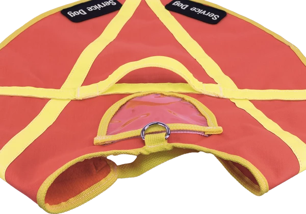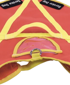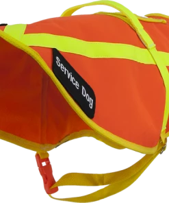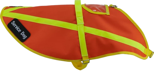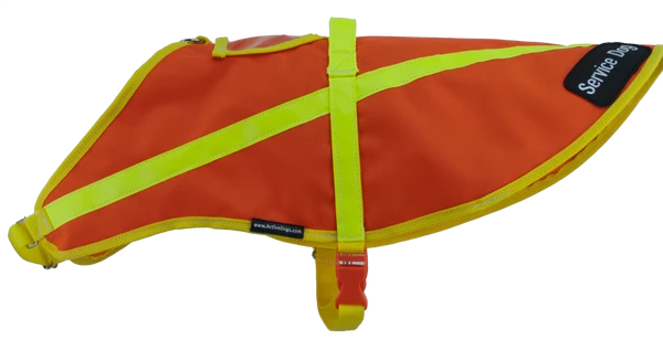 There is over 60 inches of highly reflective stitched webbing. There is a reflective grab handle for the handler. The top of the vest also has a D-ring so the vest can be used as a harness to walk your dog, however, there is no handle on the X-Small vest due to the smaller design. The entire vest is bound with bright yellow webbing and double stitched throughout. The girth strap is adjustable and has a bright orange side release buckle. Comes with your choice of 2 patches. Best of all Made in the USA for your working dog.