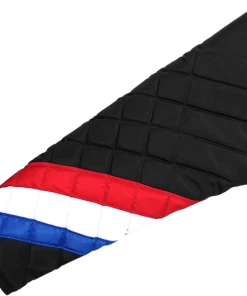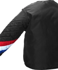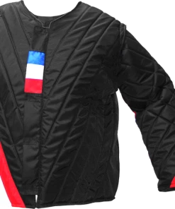 This scratch jacket is made from light weight oxford nylon for a strong, light, and super flexible jacket. It has a flashy color scheme that will match our scratch pants 8009619P. The coordinating pants are made from the same fabric and color scheme. The interior of this jacket and its sleeve have a quilted lining throughout. The jacket front and sleeve have added padding built into them for extra decoy protection to the body’s chest and arm. The jacket and sleeve are professionally quilted in a diagonal pattern. Jacket front has a zipper closures with zipper cover. The sleeve of this jacket can be worn on the right or left arm and attaches with hook/loop and Dura snaps. The jacket neckline is designed in a shallow V shape to give the decoy full neck movement. The colors of the jacket are black with red, white, and blue details. Four sizes available for this jacket and there is no extra charge for the larger sizes.