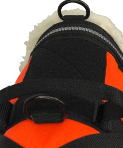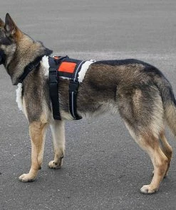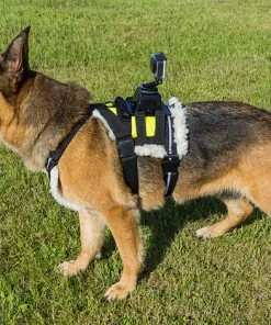 This chest pad protects the dog’s chest running through brush. A dog has its power in its chest and the pressure of the harness against its chest actually takes the stress off the girth straps when the dog is running and pulling against the line. The top of the harness has a handle that folds down and uses hook and loop to attach back onto the harness so it can be down when the dog is working and this style of handle will not as easily get caught on objects. The back plate of the harness is also padded with Sherpa for comfort on the dogs back. There is reflective webbing all around this harness for evening work. The S&R Hi Vis Double Girth Harness was designed to accommodate the activedogs.com GoPro camera mount (sold separately). This is a nice feature while working the dog during search work, building searches, and general training. In this harness we will still offer the traditional fluorescent orange fabric choice as well. Choose from Yellow/Lime or Fluorescent Orange colors.