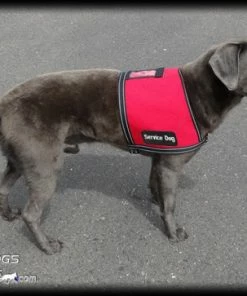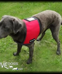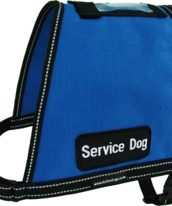 This Service Dog Vest is fashioned in a traditional cape style vest for quick and easy use. These vests are still made with the highest quality materials and consist of two layers of weather resistant 1000 denier nylon/urethane coated fabric offered in 13 different colors. The borders of the vest are bound with reflective webbing for added visibility, strength, and durability. The vest fits over the dog’s head and attaches with a quick release buckle underneath the legs. Both the chest and girth straps are adjustable to give your dog the perfect fit.