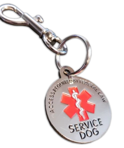 This is a High Quality Dog tag for people with a Service Dog. The tag comes with split ring and bolt snap it is a perfect size tag for working service dogs. It can also be worn on a bracelet or lanyard. Styles: Service Dog: The front of the tag is engraved with Service Dog Access Required by Federal Law and has the Medical Alert Symbol on it. The back of the tag is embossed with the Medical Alert Symbol.