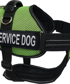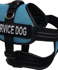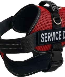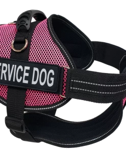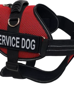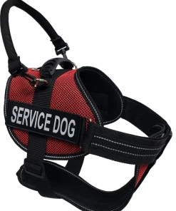 The harness-style mesh vest comes with a contoured chest connecting pad that uses the same breathable backing as the vest. The adjustable chest and girth straps of this service dog vest connect together with the chest pad so the vest stays in place while your dog is working. The vest can be put on easily using the nylon side-release buckle, and there are no floppy strap tails since the strap ends are built into the dog vest. The vest and chest protector are both trimmed in a reflective webbing for optimal safety. A molded handle on the back of the dog harness keeps your dog close so that you have control in any situation. The vest’s D-rings make attaching a leash and bridge handle easy. Service dog kit is available in other sizes and colors, and is made in the USA.