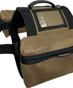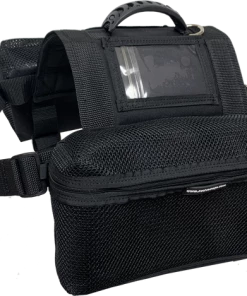 New redesigned features have been added to our Mesh Bag Vest Harness. This is a great harness style vest for carrying and transporting items that may hold moisture such as a dog water dish, water bottles, wet dog boots, towels, etc. This Mesh Bag Vest has two zippered side bags that have a solid back and bottom but, top, front and sides are constructed from a double layer mesh. This changed feature has strengthen the bags yet at the same time makes them easy to see into, light weight, and air can flow through the bags. The bags have dimensions of 3” Deep, 11” Wide and 6” Tall.