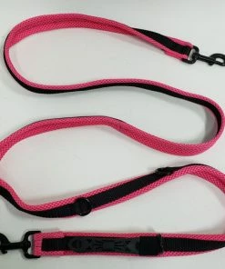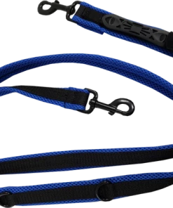 The lead rests across your shoulder and wraps under your arm and stays close to you so you have quick access to the leash with an additional molded rubber handle for extra control while training. The Spacer Mesh Hands Free Leash is adjustable with different rings that are set into the leash. This is so that the dog can be placed at different lengths away from the handler. And it gives the dog freedom to stop and lay down and rest when the lead is set on the closest snap ring. The length is 7’ long and comes in seven color choices, Aqua, Black, Lime, Purple, Pink, Red or Royal Blue. Made in the USA at activedogs.com