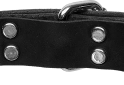Constructed of thick, black latigo leather, 1 inch wide. It is re-inforced with white stitching. The D-ring, loop and roller buckle are nickel plated steel. Latigo leather is a durable, flexible, softer leather and it breaks in faster. It is dyed solid all the way through, so it will not fade. Because of the conditioners that are infused with oils during the process latigo leather is almost waterproof. It will not dry out like most harness leather. It can be easily cleaned and oiled after use. Made in the USA, our Wisconsin factory.