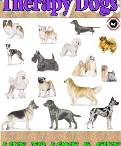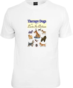 Our Therapy Dog T-shirts are available in four sizes and four different designs. They are a 100% polyester. The designs are permanent dyed. These T-shirts are durable, washable, and dry beautifully.