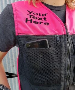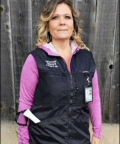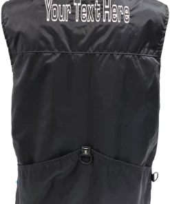 You can choose to have text or a logo embroidered on the either the left or right side of the front of the vest. A custom logo will also require a digitizing fee.