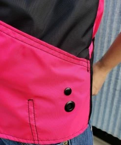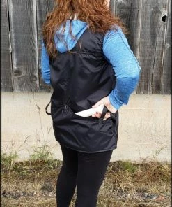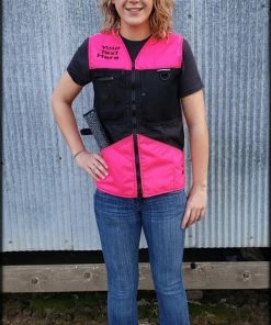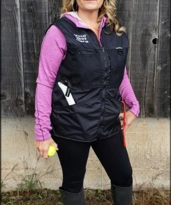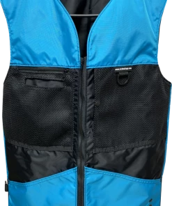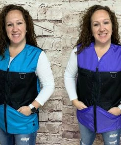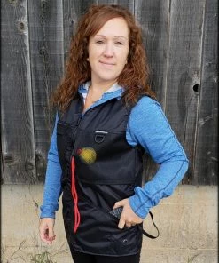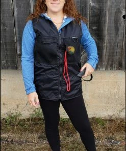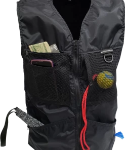This vest was designed with a specific purpose in mind. I not only required storage in my handler vest but I wanted identification. When I am in public training a service dog I have often thought I should design an embroidered back handler vest stating “Service Dog Trainer” so people will not disrupt me while I am training. The Trainers Choice Embroidered Handler Vest does just that. This vest comes embroidered if you choose or you can have it with no embroidery. It is light weight without restriction in the neck and armhole areas so you have easy movement. It is fully lined, no scratchy seams and has a full front molded zipper. Another issue is always that pesky dog hair but dog hair dose not stick to this fabric. The vest is easily cleaned by wiping off with damp towel. Lots of pockets and D-rings on this vest, you can never have too many storage pockets. There are 7 pockets on this vest. The back has a full width pocket that can be accessed from either side, with a top center D-ring. I like this D-ring for hanging of a short pull tab or a small tug. On the front of the vest there are two large lower pockets. The top area of the vest has a great side opening mesh pocket, this works well for draping a tug or roped ball and letting the dog see it for motivation. On that same mesh pocket there is another D-ring at the top, this can be used for the same purpose. It also works great to hang a remote controller. The other side of the top has a double pocket. A mesh pocket with top opening, this is where I put my phone so I can easily hear and see it. Behind that mesh pocket is a zippered pocket, a good feature if you want to secure keys or smaller loose items. One of the best features of this vest is the built in poop bag holder. The bags are easily accessible from the vest exterior. Convenient to load on the vest lower left side. The lower right side of the vest has another D-ring. This work for hooking your leash. We will custom embroider this vest for you. You can have your text and/or logo put on the vest front. The Trainers Choice Embroidered Handler Vest is black in color and comes in five sizes. USA MADE