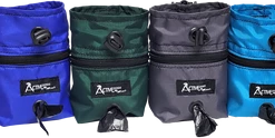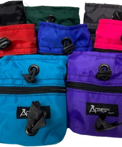 The Activedogs.com Treat Pouch & Waste Bag Holder has an elastic draw corded top so you can cinch closed the top of the pouch. It has a clip on the pouch back so you can attach this pouch to your pants belt loop, a leash, your bag, or on your dog’s harness or vest. This treat pouch is offered in eight beautiful colors.