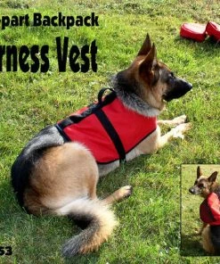The large backpack side closes with a zipper. There is a nylon netting see through outer pouch on each side. This is great for carrying your Frisbee or items that you frequently require. The backpacks are designed to fit over the handle and D-ring so that both the D-ring and handle can be used while the backpacks are attached to the harness. The backpack bags are large approximately 10”x13” and expand 3”. The rounded flowing design of the bottom of these backpacks makes them a more functional and safer design. There are no flopping belts on this backpack harness vest which tend to catch on objects. This 2 piece Backpack Harness Vest is made to carry lots of stuff and is a workhorse for traveling. Made in the USA.