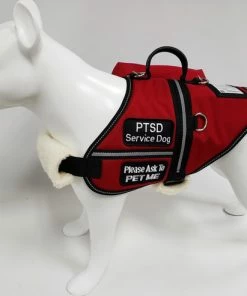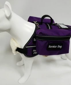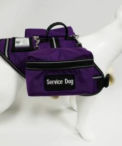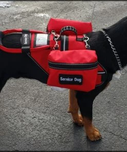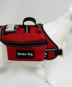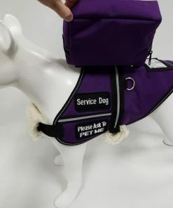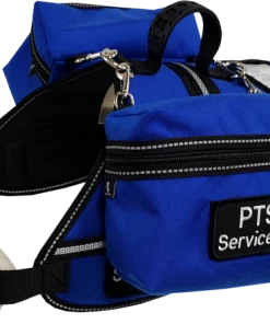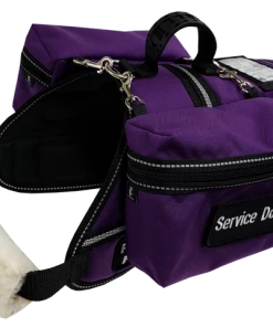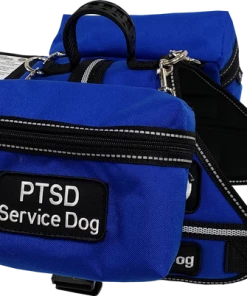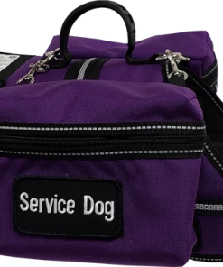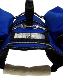 On the top back section of this vest is a vinyl window pocket to put your dog’s ID Badge with velcro closure to secure it in place. This window pocket will fit all ID Badges made by ActiveDogs. The rubber molded handle is placed vertical for comfort and easy access. There are 4 reflective strips on the vest and the entire vest and additional bags are bound in reflective webbing for maximum visibility & safety. There are 4 D-Rings on this vest to accommodate your bags, bridge handles, leash & other accessories. The girth and chest straps are 1.5” in width and come with padded removable sherpa covers, both are adjustable to get the best fit.