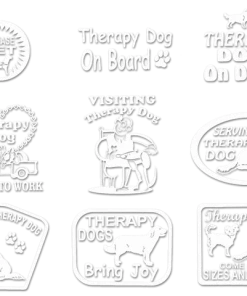 These Pressure Sensitive Vinyl Decals easily identify your Therapy Dog. They adhere securely to any smooth surface. There is no background, so the decal has a “2D” effect. Each decal comes with photo instructions for easy application. These decals are a professional exterior grade vinyl.